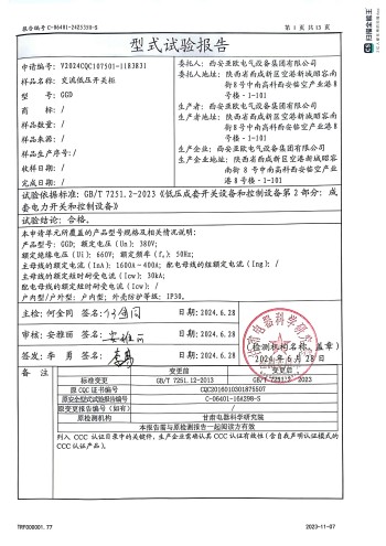 交换高压开关柜(GGD)天资: